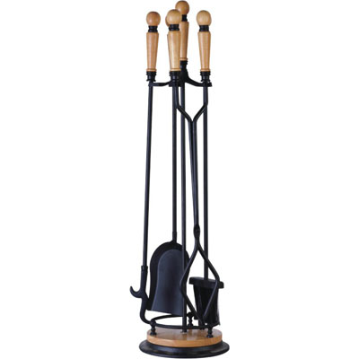5 pc fireset H32" Wooden handle and base Black finished |
